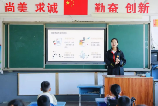 在凤山学校未成年人保护普法宣讲中,志愿者们通过生动有趣的PPT、动画视频和互动问答环节,以通俗易懂的语言,结合孩子们熟悉的生活场景,向孩子们讲解校园安全、网络安全、防欺凌等知识,问答环节员工们积极参与,现场气氛十分热烈,在轻松氛围中增强了自我保护意识和能力。