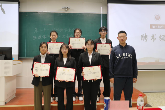 在全场的热烈掌声中,王艺帆老师为第三十一届主席团成员及各部门部长颁发聘书。这一仪式不仅是对大家过往工作的肯定,更承载着对新任期工作的期许。