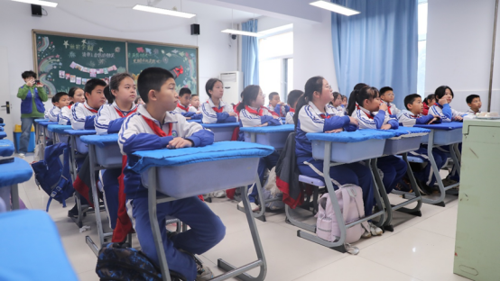 紧接着,志愿者通过科普视频,生动讲解了“核”在军事与生活中的应用,让孩子们更加理解核技术对国家和社会的重要意义。在最后的知识竞赛环节中,同学们积极回答关于“两弹一星”精神和功勋人物的问题,童稚而坚定的声音中流露出对科学知识的渴望。这不仅是一次历史回顾,更是在孩子们心中深深埋下了科学与爱国的种子。