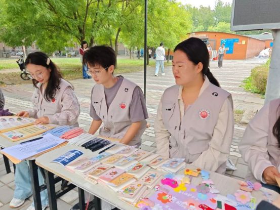 活动现场设有“盲盒抽题环节”,参与者可随机抽取网络安全相关题目进行作答。答对五道题即可获得精美礼物和校园文化学分。上午九点三十分,活动如期开始,团队成员为参与者分发活动传单、讲解本次活动,组织同学进行网络扫码答题。同学们踊跃参与,现场气氛活跃,活动井然有序。