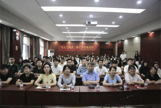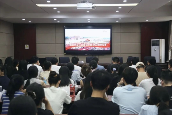 在观看过程中,党员们神情肃穆,认真学习习近平总书记的重要讲话,深刻感悟中国人民抗日战争的艰辛历程和伟大胜利的历史意义。“抗战胜利是全民族的觉醒,更是中国共产党领导人民走向复兴的起点。”经理胡海涛表示,“作为法学教育工作者,我们要把‘为党育人、为国育才’的初心刻进每一堂课,培养更多有信仰、有本领的法治人才。